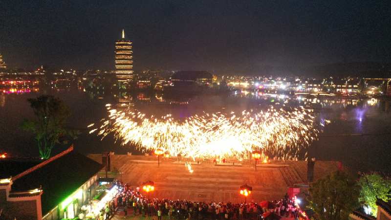 銅官窯古鎮的夜晚散發著另一種生活的意趣和美好。除了夜間開放的酒吧和餐館、飛行影院、5D影院、機器人博物館等,全球首部激光煙火水舞秀《夢幻銅官窯》每晚在古鎮上演,美不勝收的焰火、星空激光水幕秀令人目不暇接;令人拍案叫絕的民間千年絕技——非遺技藝打鐵花表演,火樹銀花在夜空中綻放,漫天飛舞的金花絕對能讓你大飽眼福;結合四大戲樓非遺傳承首次推出的沉浸式演藝,穿插街區巡游表演,讓游客感受全天候繁華景象和視聽盛宴;深度挖掘開發的銅官草市,一店一品,全面推出本地傳統小吃,讓游客吃得放心、玩得開心。另外,古鎮還在清明節、五一勞動節、端午節等節日分別舉辦游客喜聞樂見的主題活動,全面引爆假日旅游。